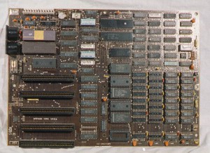 Cette époque, totalement inconnue des plus jeunes, avait apporté son lot d’innovations. Je pense par exemple à la carte mère de notre ordinateur IBM :