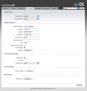 Voici quelques copies d’écran des différents changements sur AirOS 5.3beta 2, ici sur une Picostation M2. Commençons par le tag des Vlan, attendu depuis longtemps :