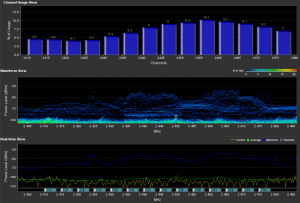 Nous avions consacré un billet à la détection de signaux TV 2.4 GHz, voici maintenant ce que détecte Airview en présence d’un brouilleur WiFi.