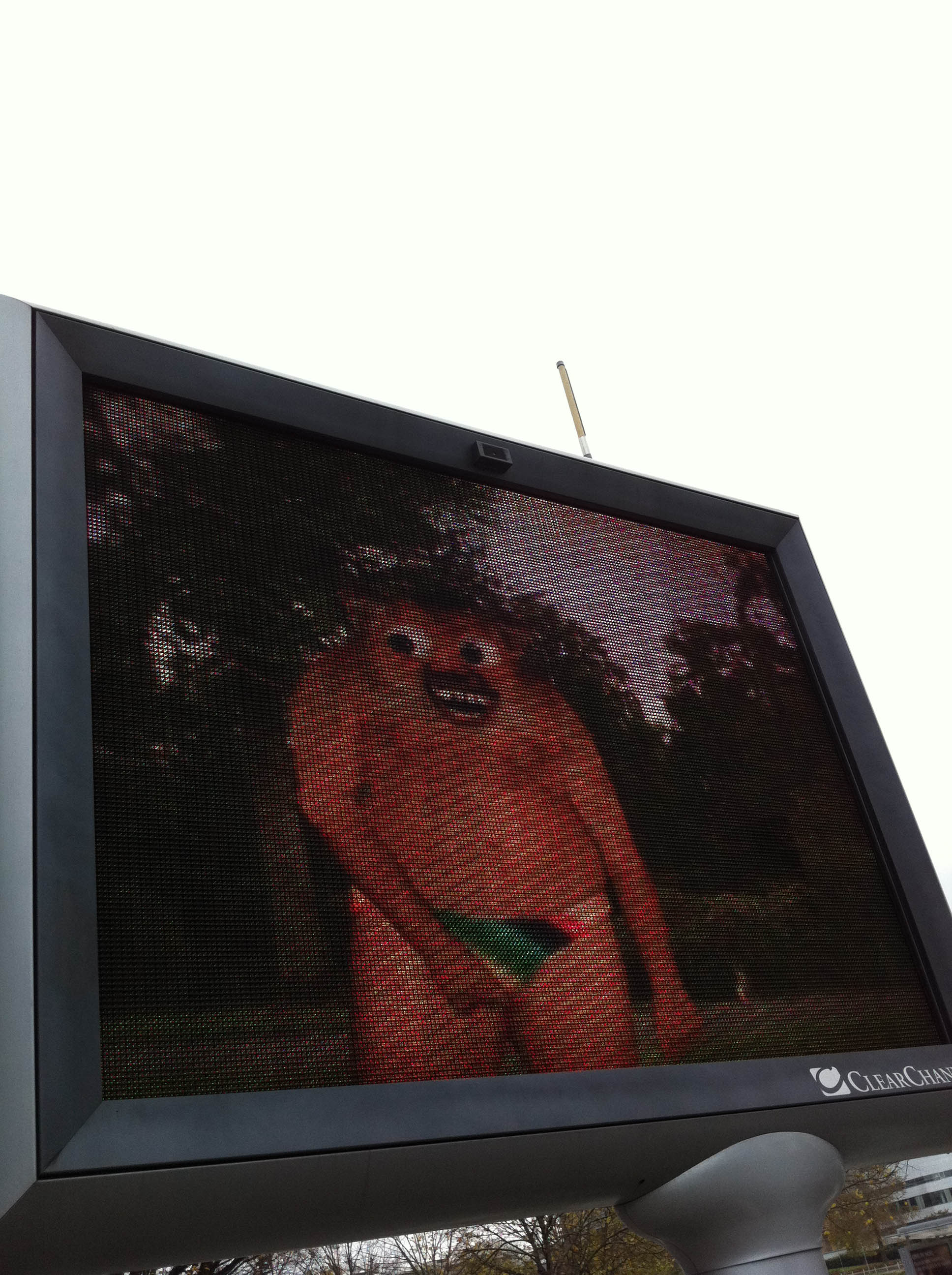 Il s’agit d’une antenne omni assurant une liaison réseau avec un serveur central, destiné à télécharger les différentes animations de l’écran géant.
